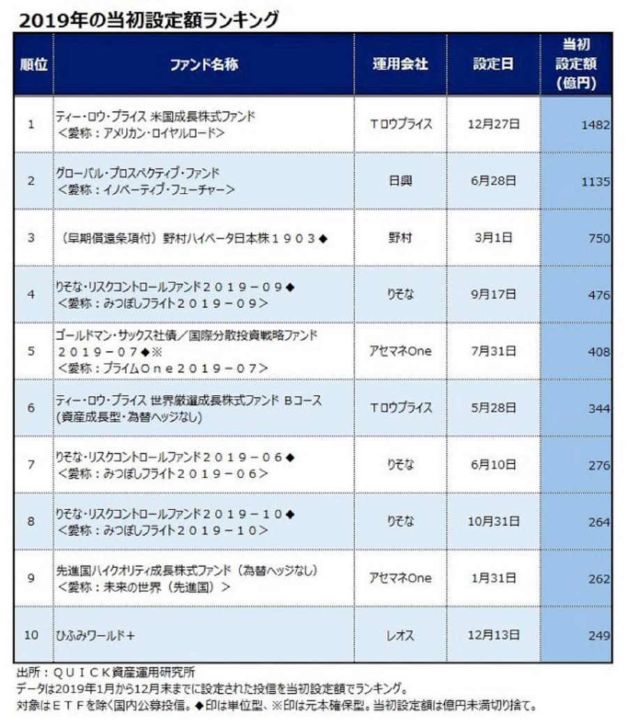 19年の投信 設定額首位はtロウ 米国成長株式 日本経済新聞